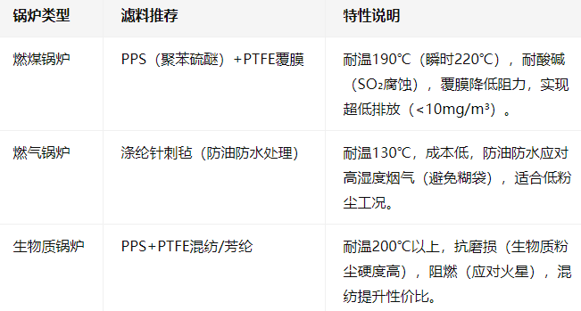 濾料是除塵器的“心臟”,需匹配煙氣溫度、腐蝕性、粉塵特性: