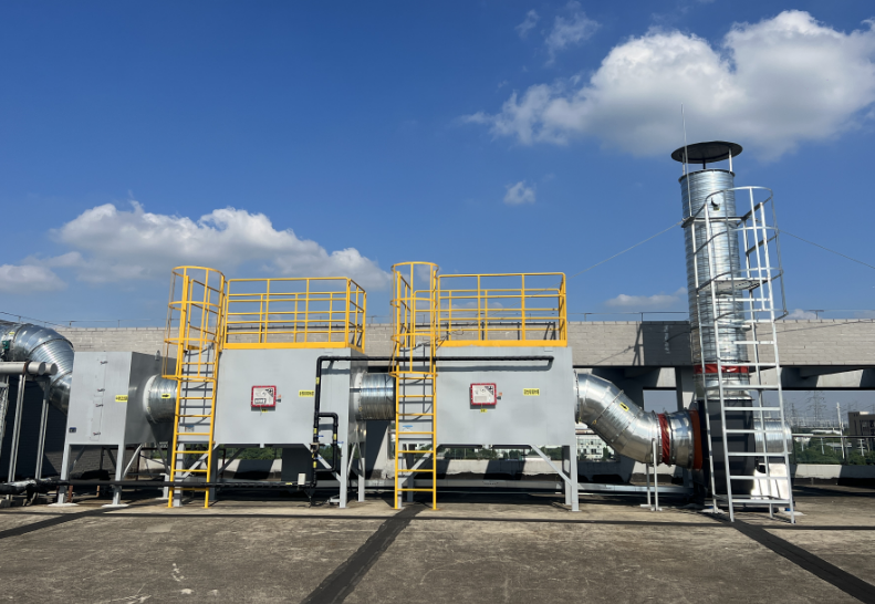 在注塑行業里產生的廢氣含有一定的粉塵顆粒物,使得在處理注塑廢氣時要預處理去除大量的粉塵,以免堵塞后面的活性炭吸附箱。注塑廢氣我們一般采用前部設置噴淋塔,后端配備活性炭吸附箱,用以吸附廢氣中的三苯類有機污染物,凈化后的廢氣經風管高空達標排放。
