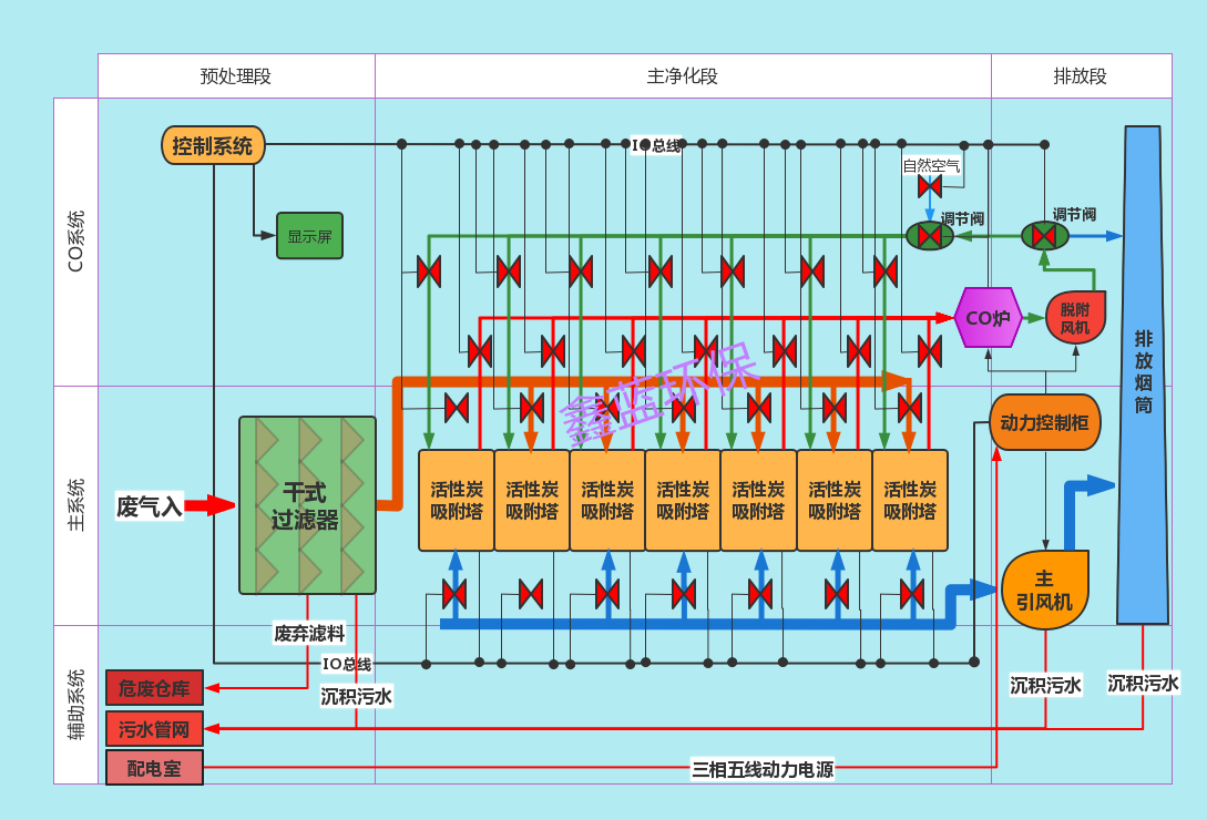 活性炭吸附脫附-催化燃燒工作原理: