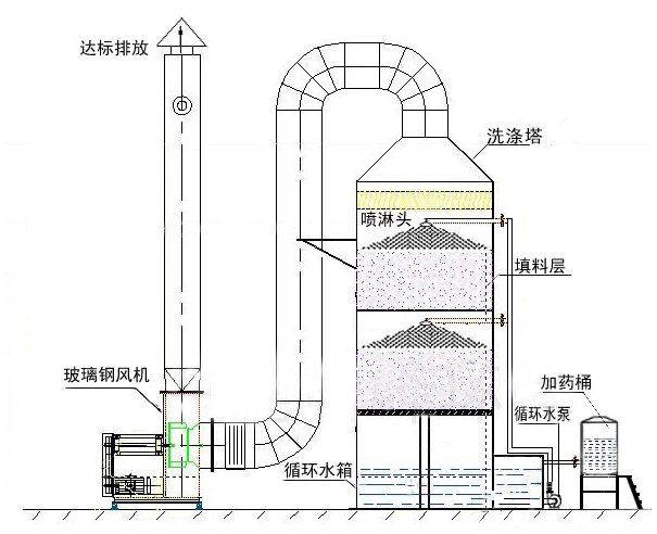 造紙廠廢氣處理工藝:噴淋洗滌塔采用氫氧化鈉(NaOH)溶液作為吸收液來凈化廢氣。
